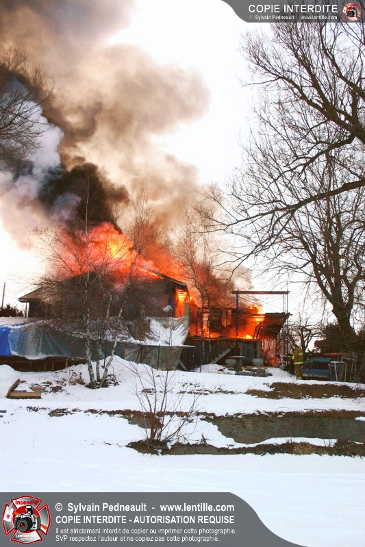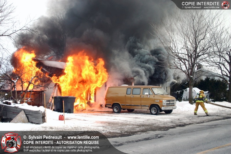 Une explosion cause un incendie majeur à 3 alarmes dans une résidence sur le bord de la rivière à Saint-Hyacinthe. La maison est lourdement endommagée et le propriétaire s'en tire avec des brulures au deuxième degré et un violent choc nerveux.