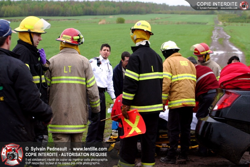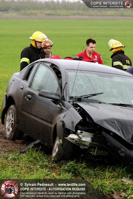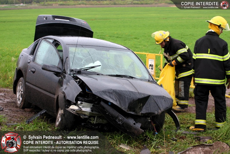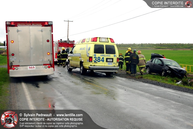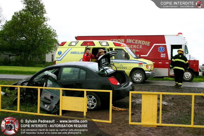 Accident mortel à St-Valérien, alors qu'un véhicule effectuant un dépassement a quitté la route et a percuté le fond d'une décharge.