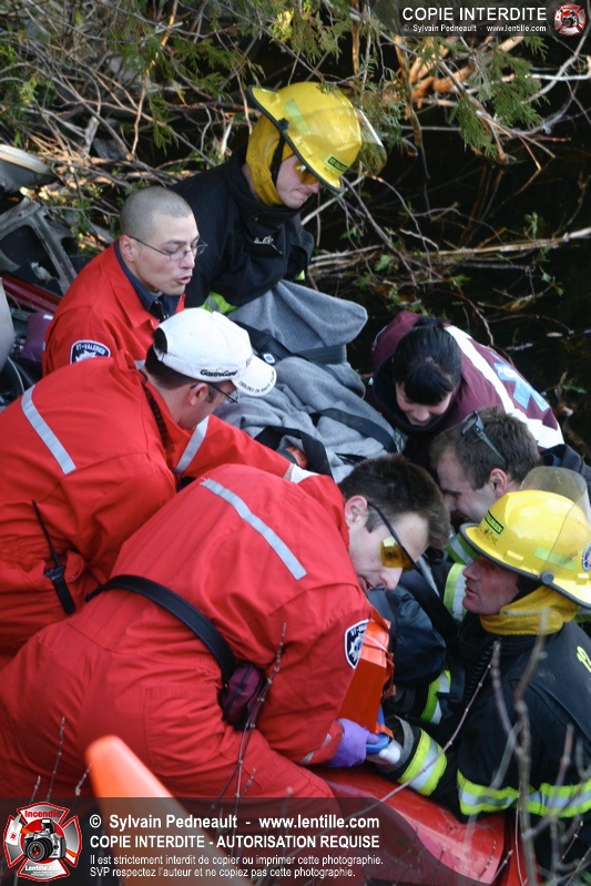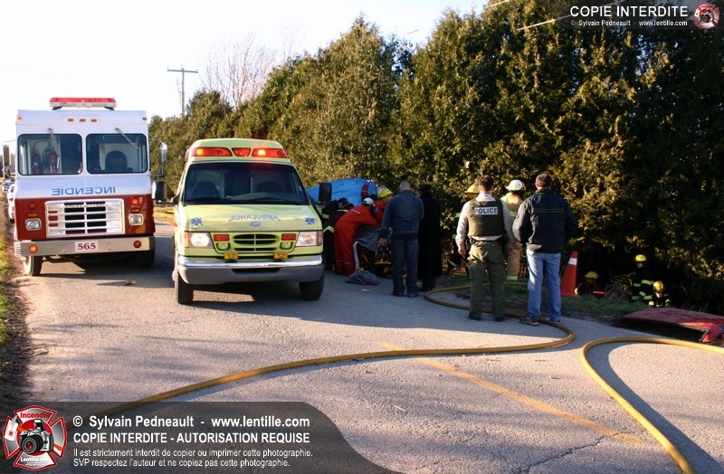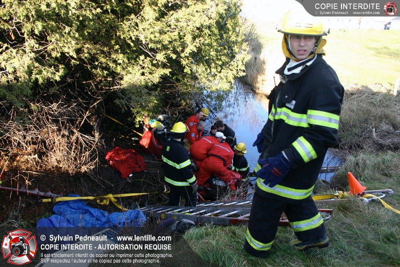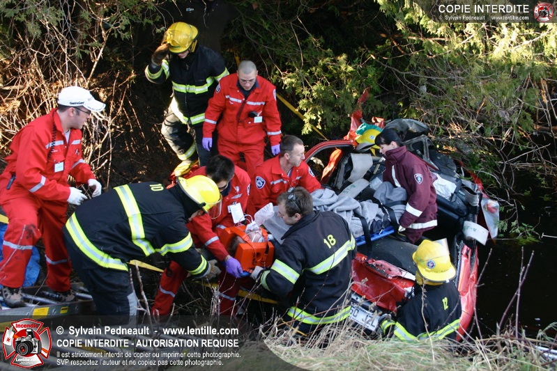 Les PR et le SSI de St-Valérien se sont rendu sur les lieux d'un grave accident impliquant un véhicule. La conductrice de 23 ans s'en tire tout de même très bien, considérant l'état et la position du véhicule.
