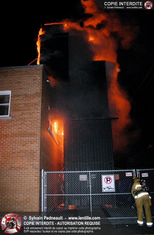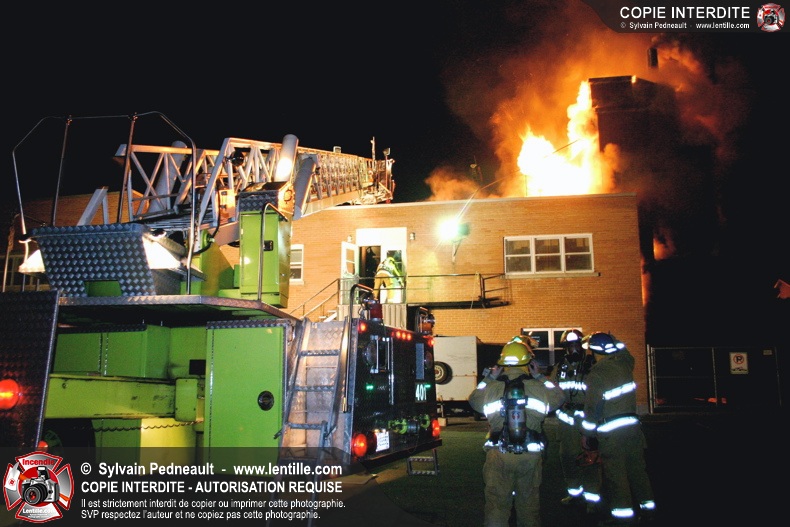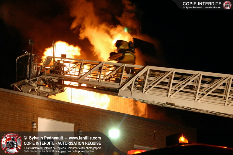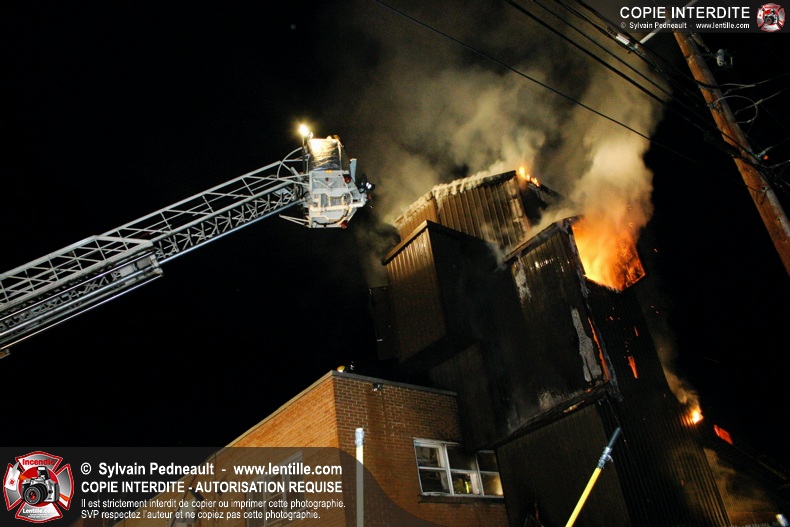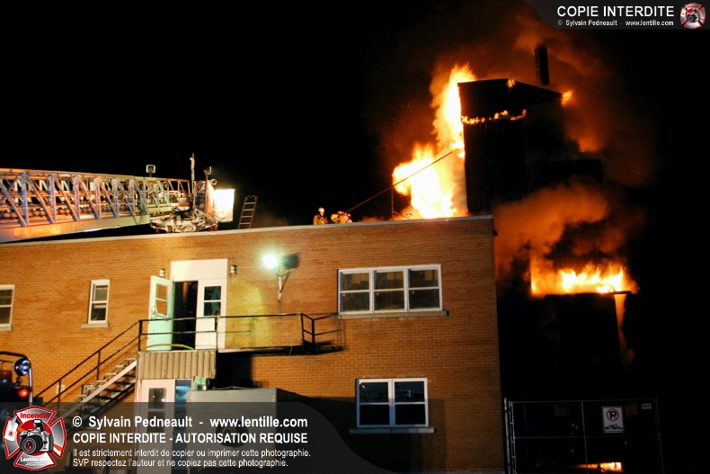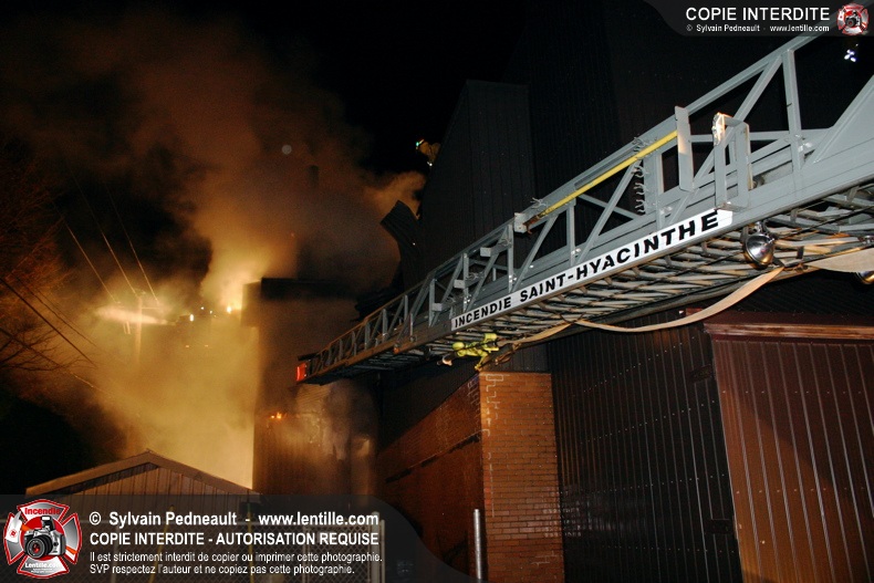À 21h07, le SSI de Saint-Hyacinthe a reçu un appel pour fumée et flamme apparente dans un bâtiment industriel où l'on fabrique des orgues. Trente minutes plus tard, l'intervention était en 4ième alarme et 62 pompiers combattaient l'incendie. Le feu a entièrement détruit l'immense dépoussiéreur au secteur 3, en plus de causer des dommages majeurs au toit de l'usine. 10-08 à 22h55, 10-10 à 23h23.