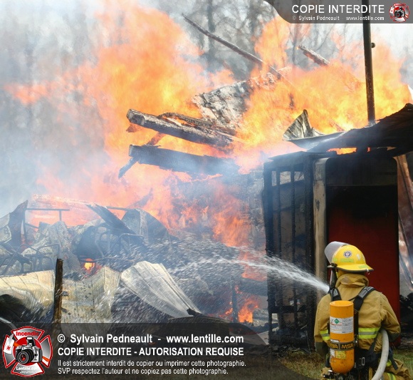 Le SSI de St-Pie a reçu un appel pour feu de forêt, qui finalement s'est avéré être un feu de bâtiment de type grange. Les vents très violents ont ensuite compliqué les choses, en transportant des tisons chauds dans la toiture d'une maison abandonnée à une bonne distance de là, causant un second incendie.