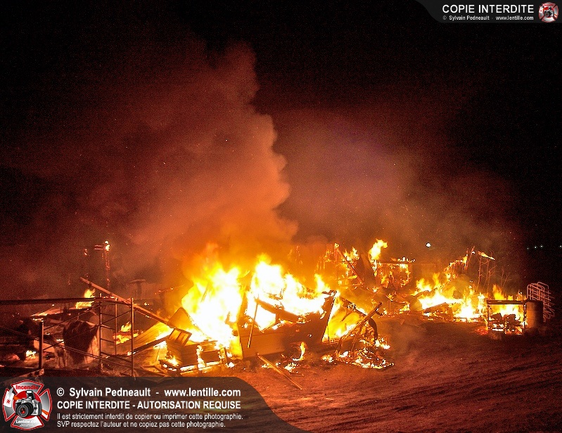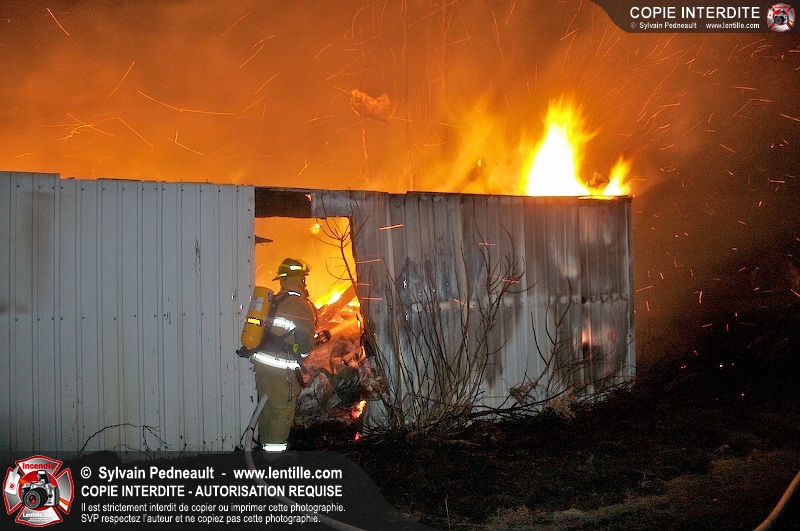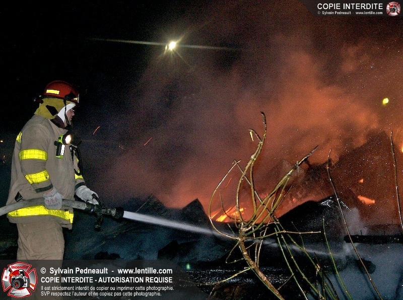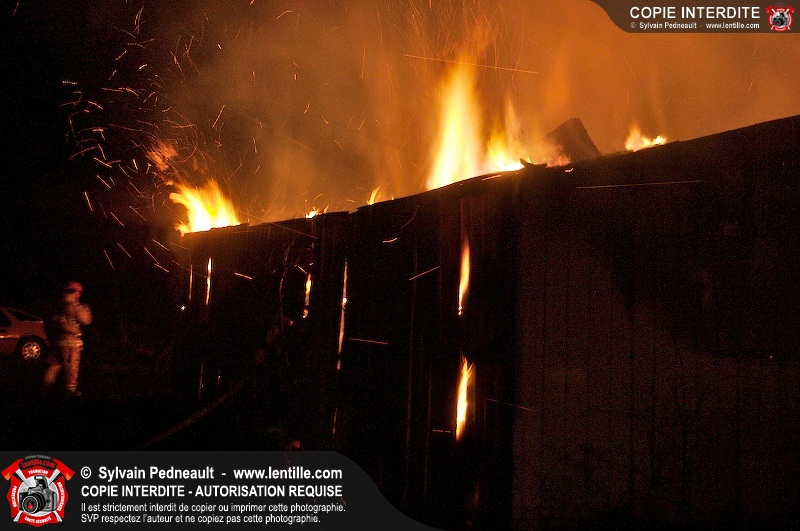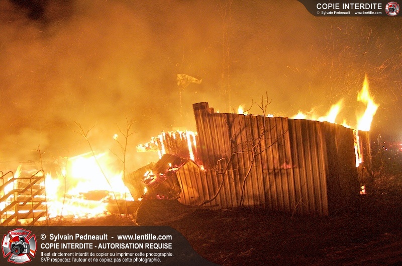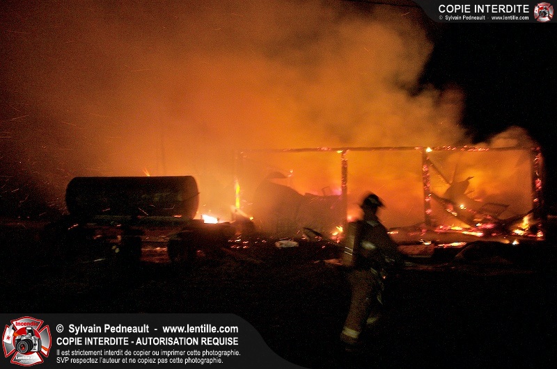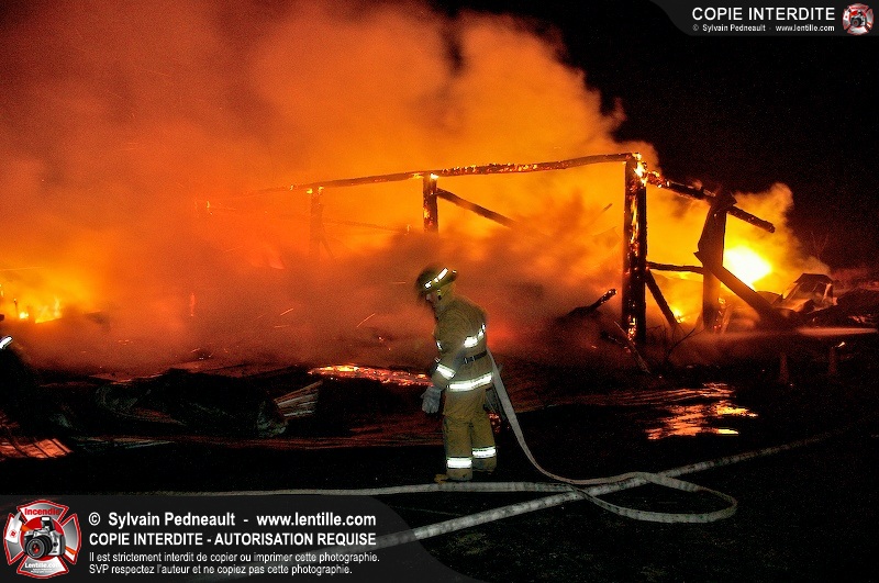 Une grange sur le 7e rang à St-Dominique a été la proie des flammes tôt mercredi matin. Les pompiers de St-Dominique ont fait appel à leurs collègues de St-Hyacinthe, St-Liboire et St-Pie pour assurer l'approvisionnement en eau.