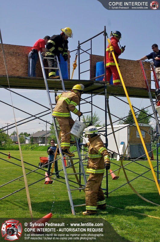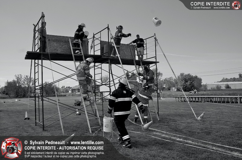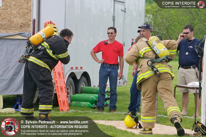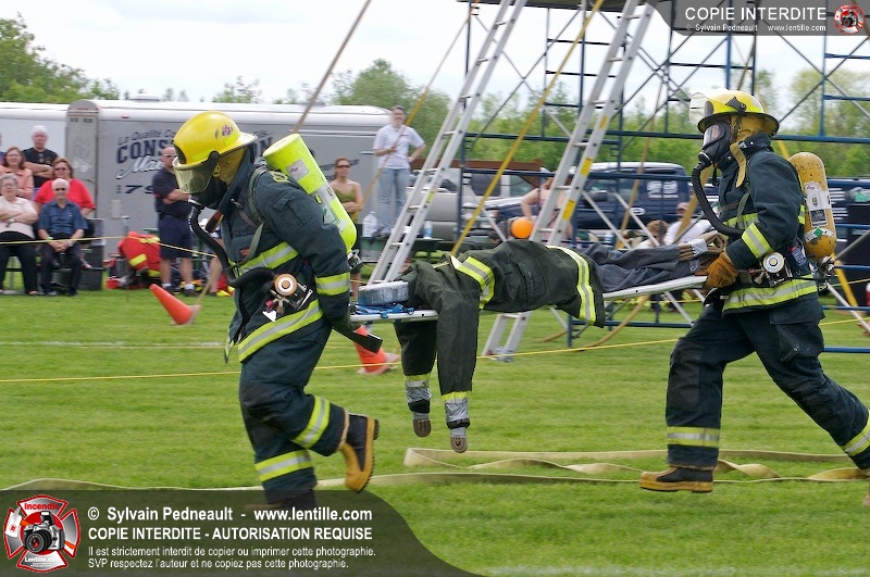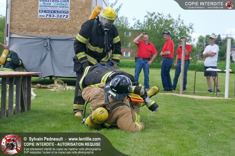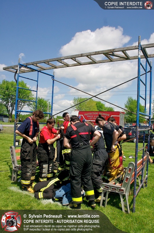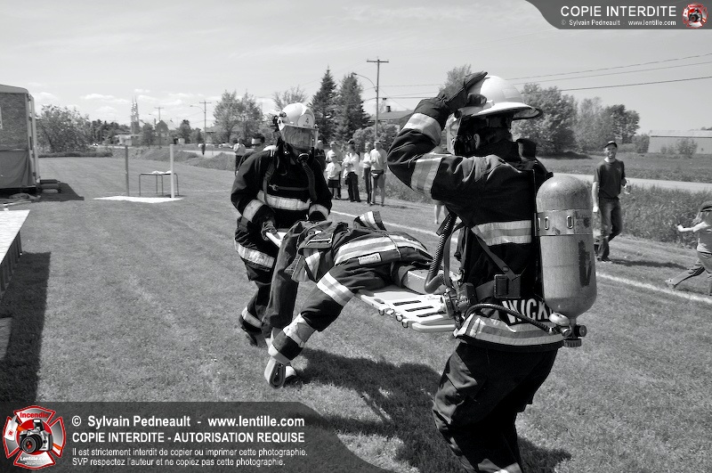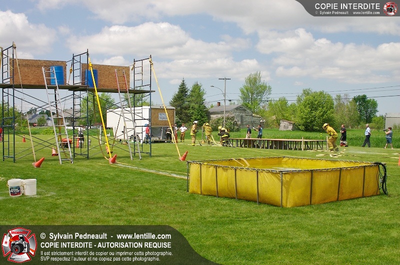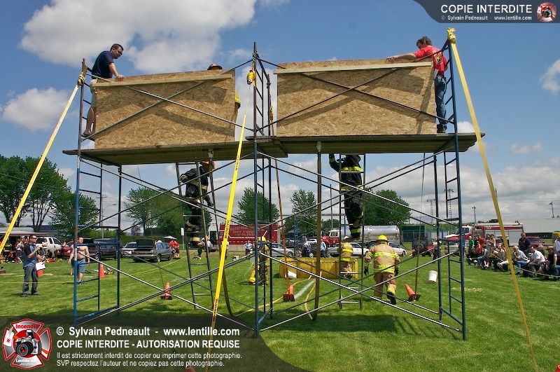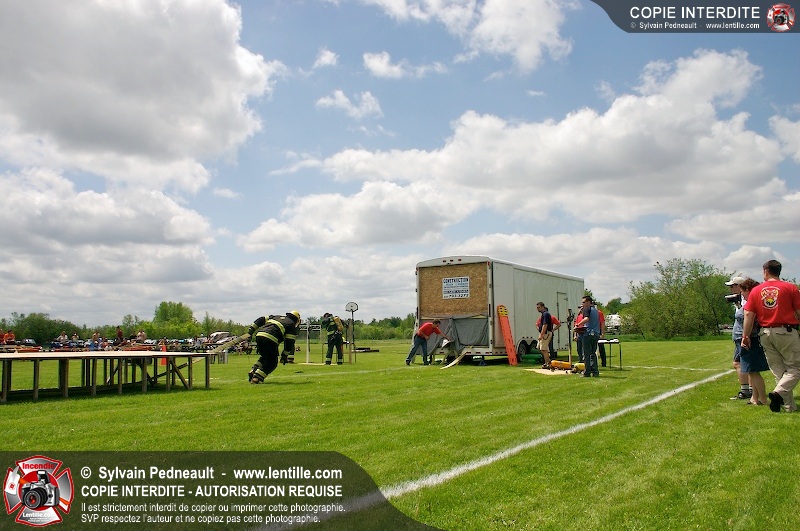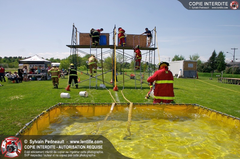 L'événement qui s'est déroulé sous un magnifique soleil a été un véritable succès. En tout, dix équipes de pompiers se sont affrontées dans divers parcours d'habileté et d'endurance, dont une difficile épreuve de recherche et sauvetage dans une remorque-labyrinthe-de-3-étages construite sur mesure pour l'événement.