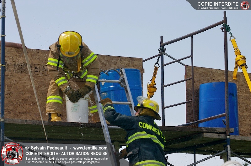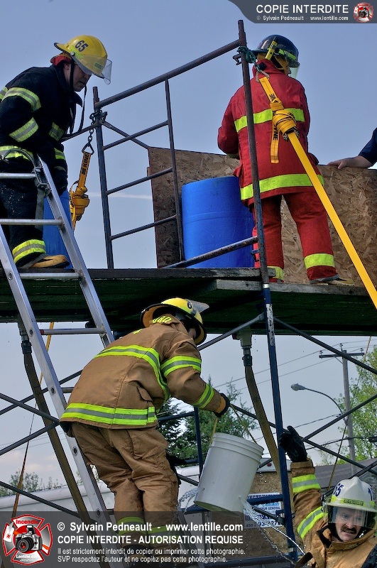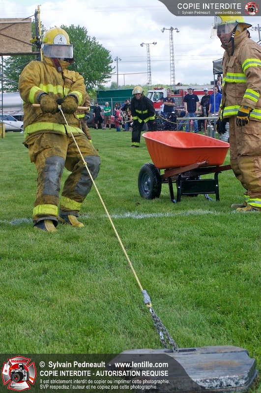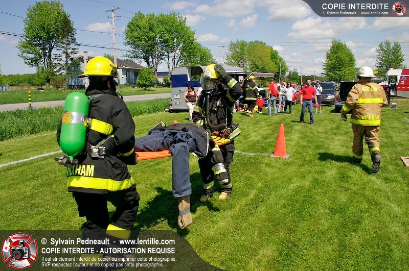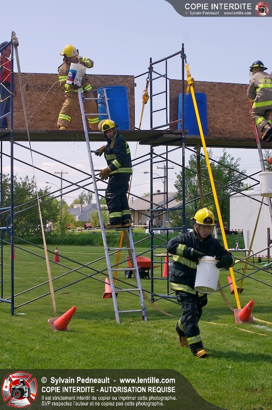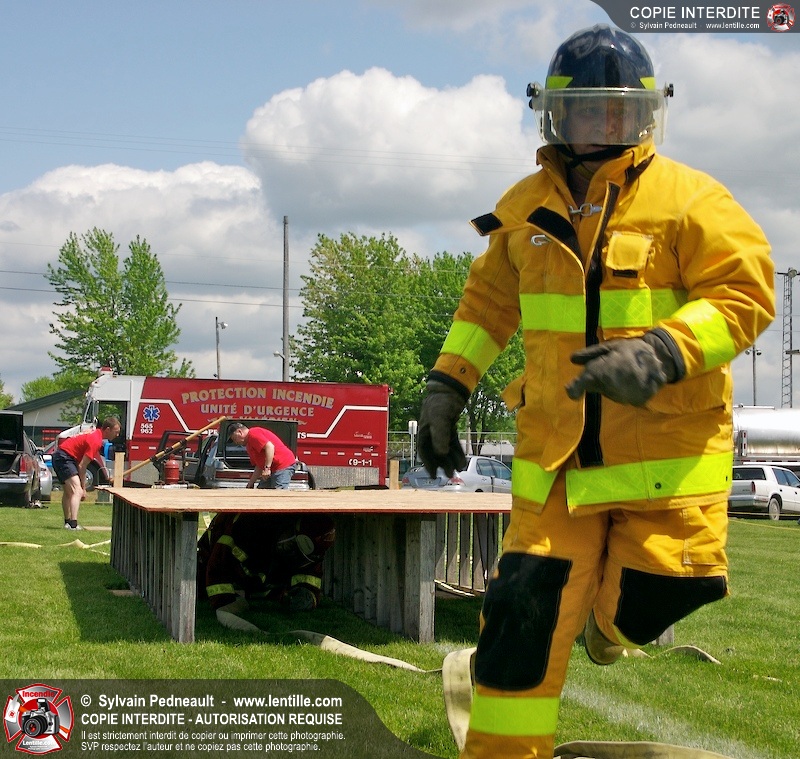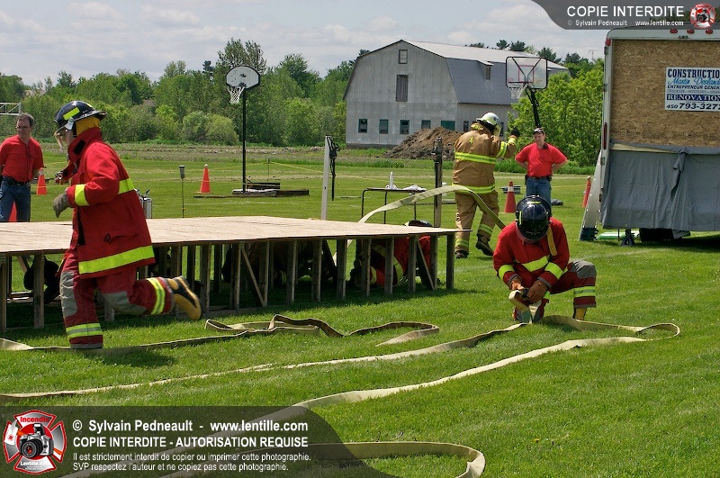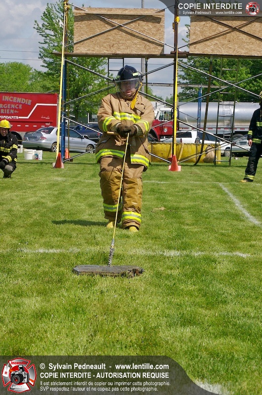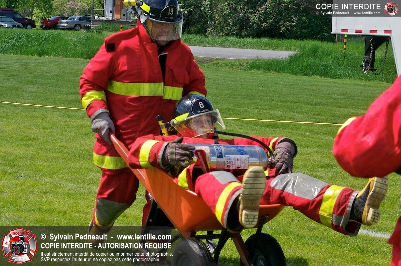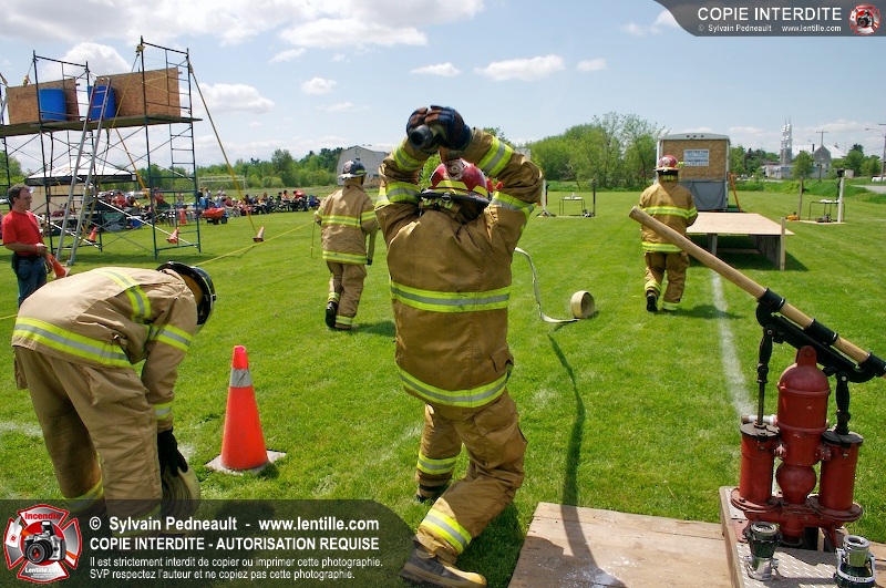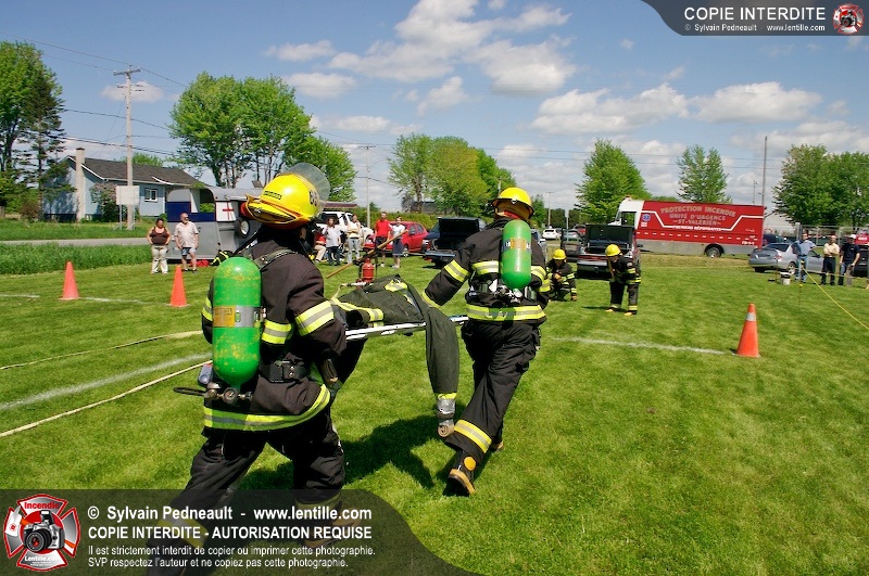 L'événement qui s'est déroulé sous un magnifique soleil a été un véritable succès. En tout, dix équipes de pompiers se sont affrontées dans divers parcours d'habileté et d'endurance, dont une difficile épreuve de recherche et sauvetage dans une remorque-labyrinthe-de-3-étages construite sur mesure pour l'événement.