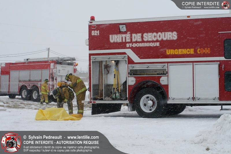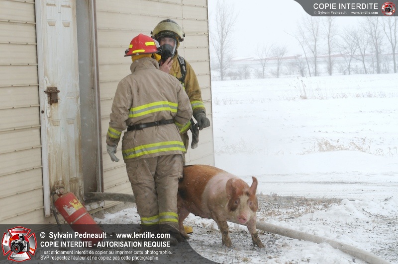 Les pompiers de St-Dominique n'ont fait qu'une bouchée de l'incendie qui prenait naissance dans une porcherie du 7e Rang. Dès la première alarme, le PC a demandé en entraide des citernes et des équipes de Saint-Hyacinthe, St-Valérien et St-Pie. La rapidité des pompiers a permis d'enrayer la propagation et de circonscrire l'incendie.
