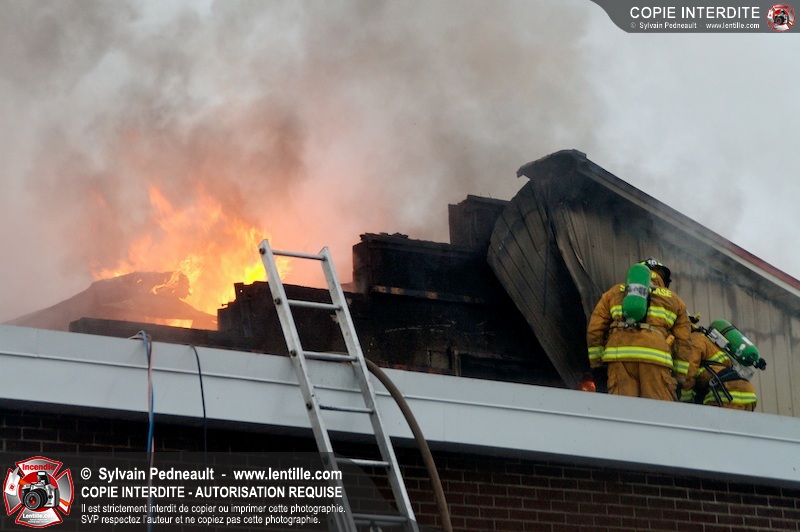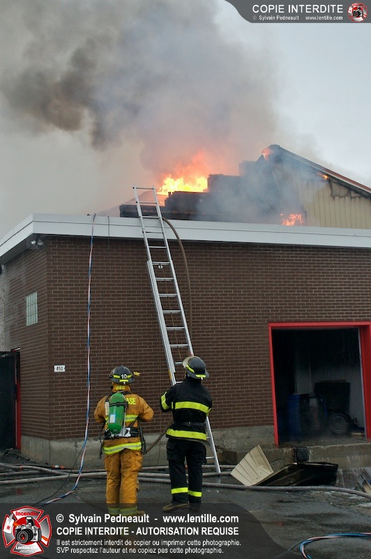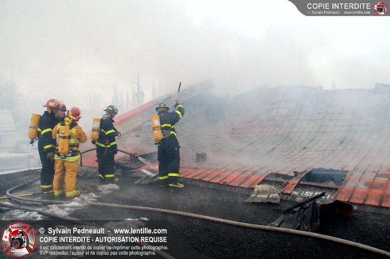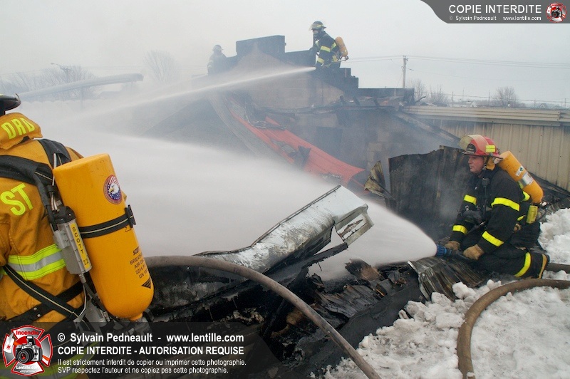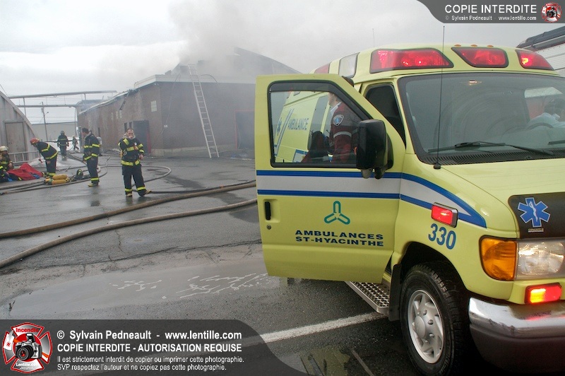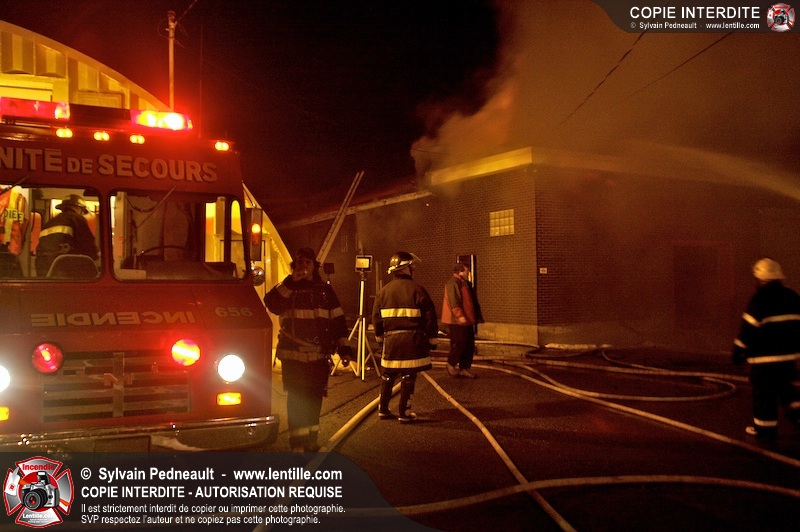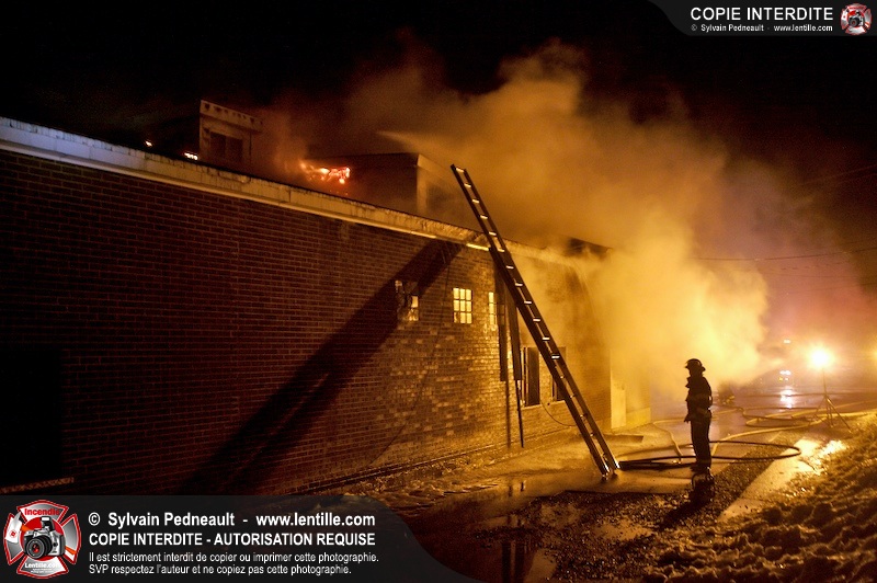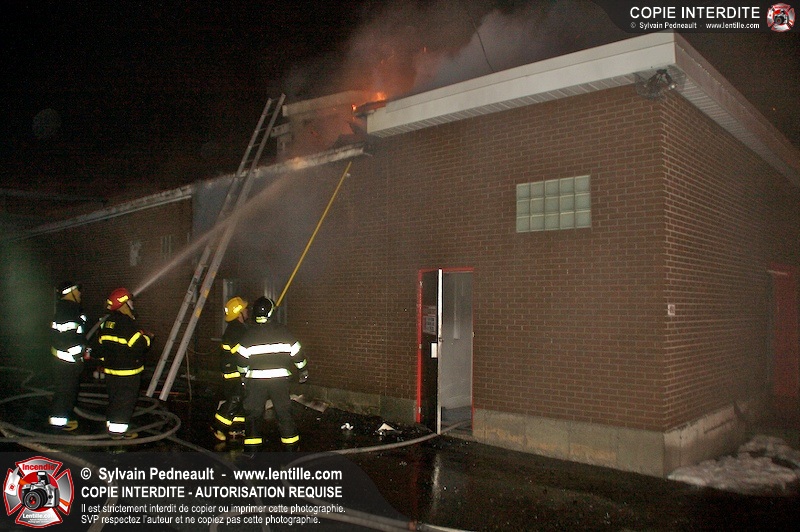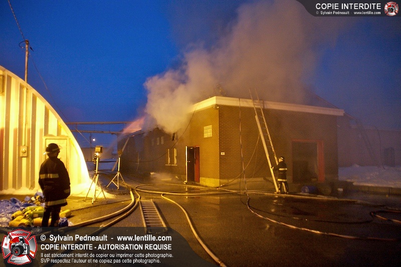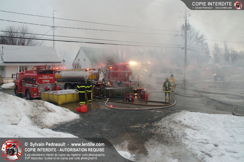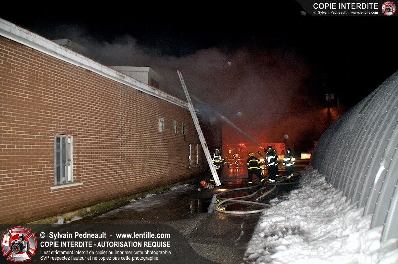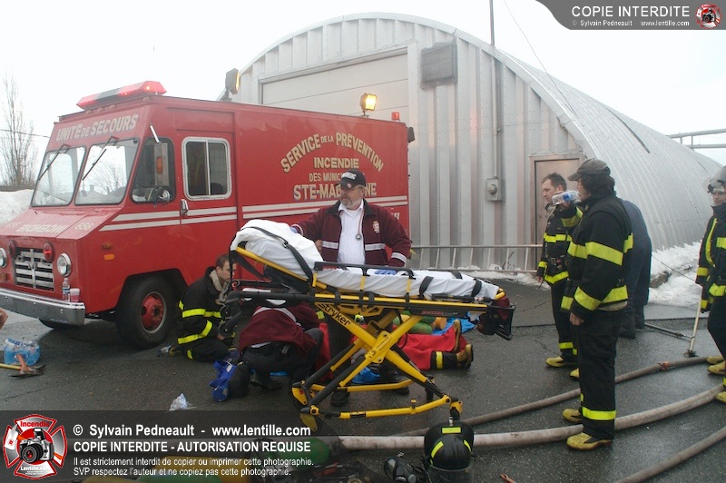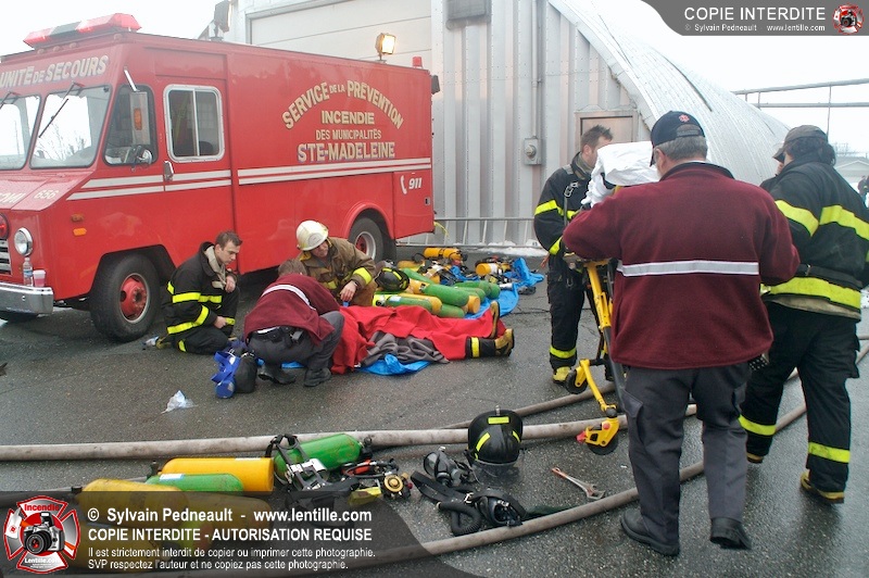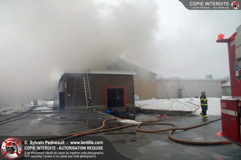 Un incendie a détruit la majeure partie d'une usine sur la route 227. Les pompiers de Ste-Madeleine ont été épaulés par leurs collègues de St-Damase tout au long de l'intervention. Une citerne de St-Damase et une de St-Hyacinthe ont également été appelées en renfort pour l'approvisionnement en eau. Finalement, les paramédics de Saint-Hyacinthe ont été dépêchés sur le site pour transporter un pompier blessé lors d'une chute.