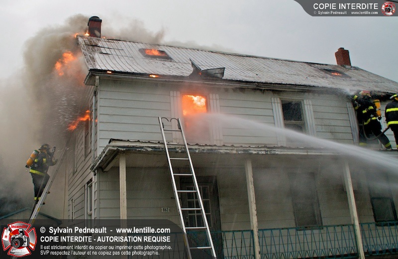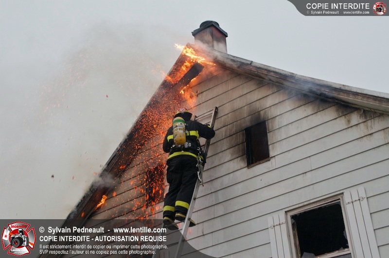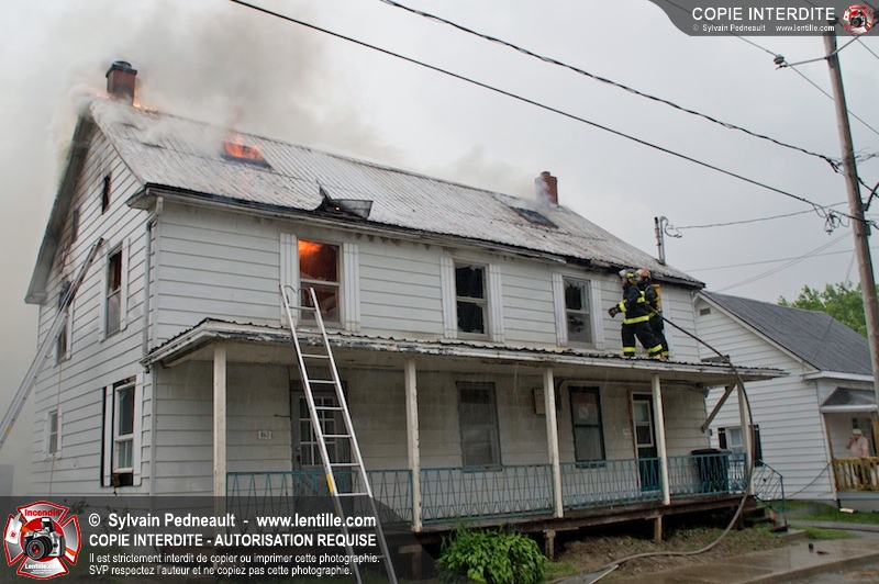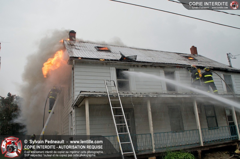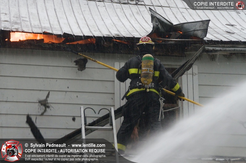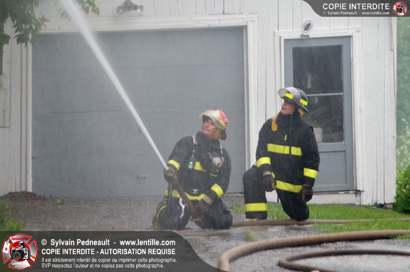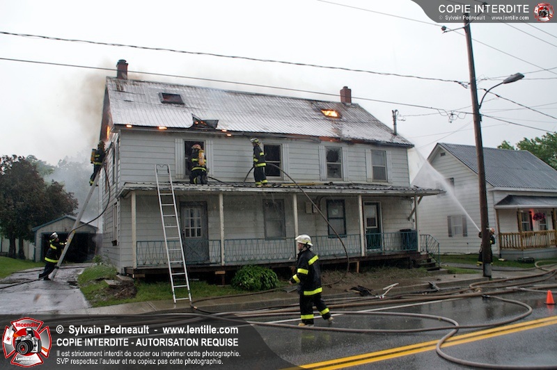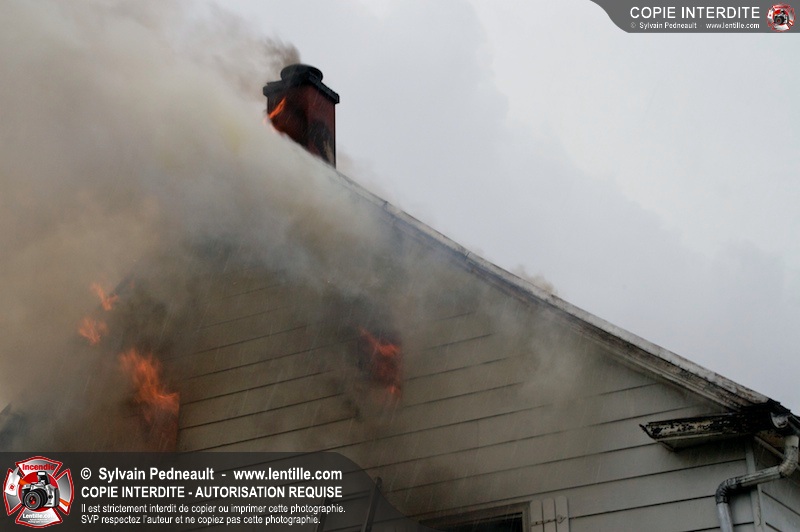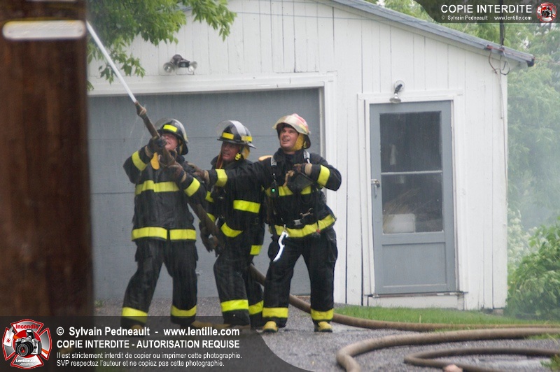 Les pompiers de St-Jude ont dû intervenir en plein milieu d'un violent orage pour combattre un incendie dans une vieille résidence. Un code rouge a dû être sonné au moment où l'orage était particulièrement dangereux.