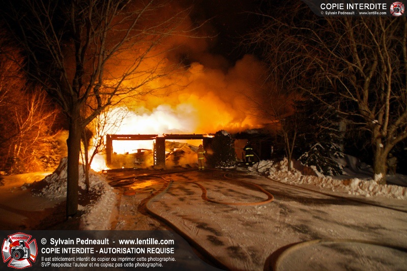 Un incendie majeur a détruit une bonne partie d'une résidence à Sainte-Hélène-de-Bagot. À l'arrivée des pompiers, le garage double relié à la résidence était déjà entièrement embrasé et le feu se propageait à la résidence. Les pompiers de Ste-Hélène ont demandé de l'aide de leurs confrères de Upton et St-Nazaire.