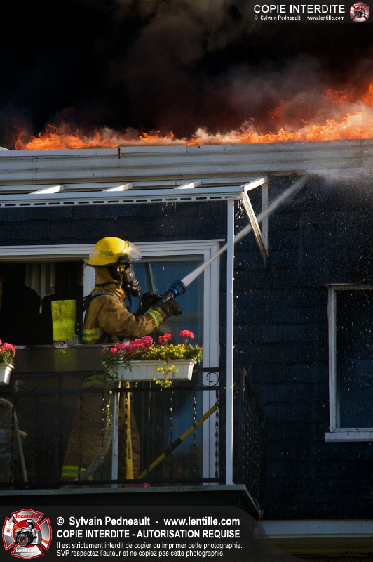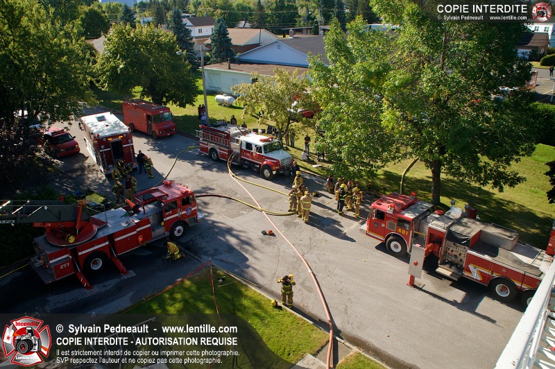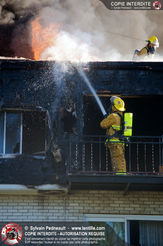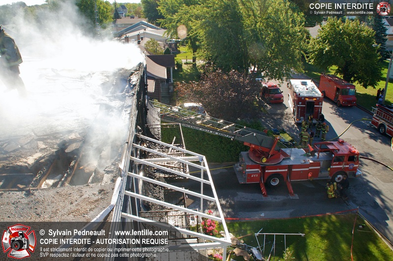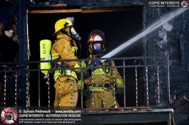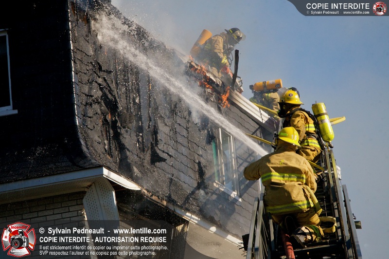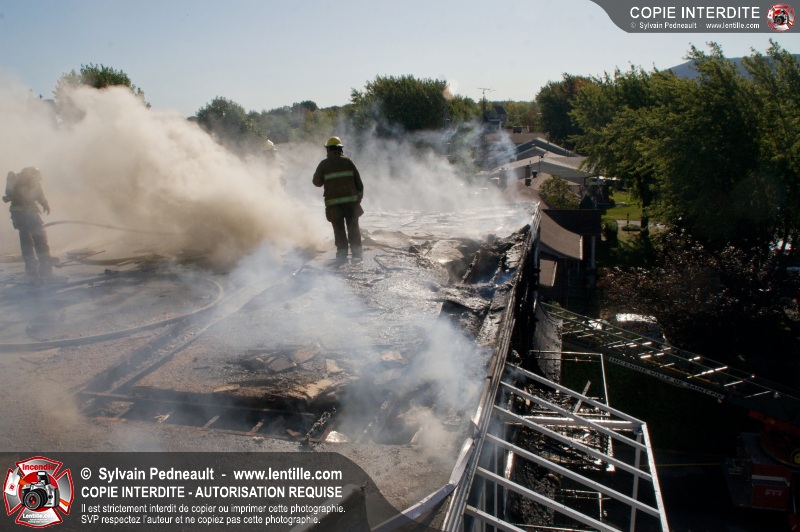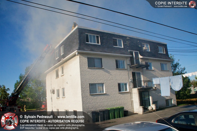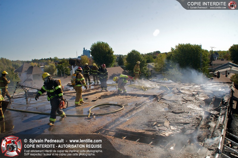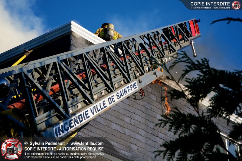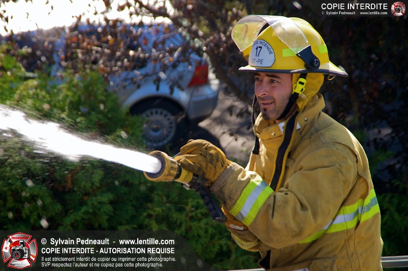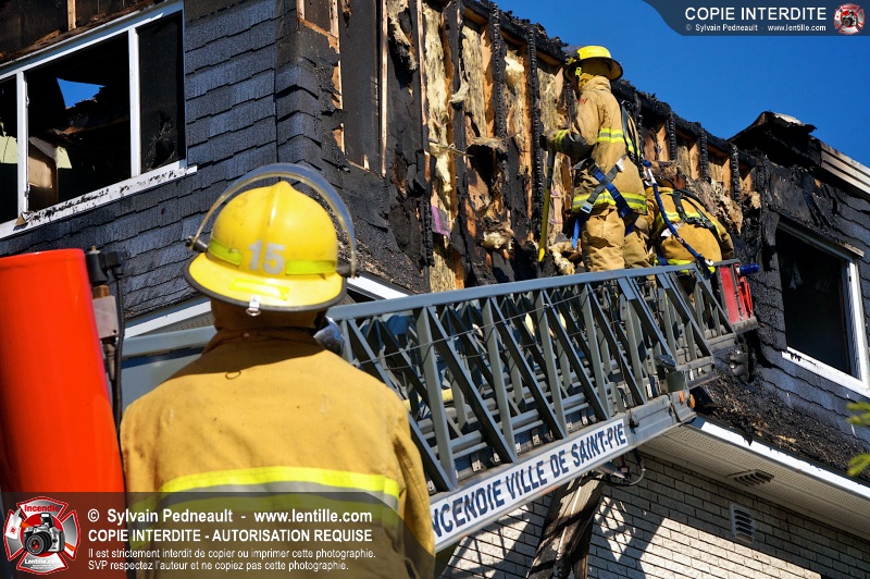 Un incendie majeur a causé de lourds dommages à un immeuble de six logements à St-Pie. Les pompiers de St-Pie, Saint-Hyacinthe, St-Dominique, St-Valérien et St-Damase ont collaboré pour venir à bout du brasier.