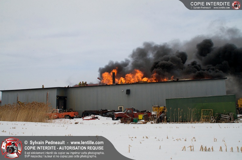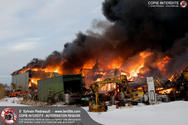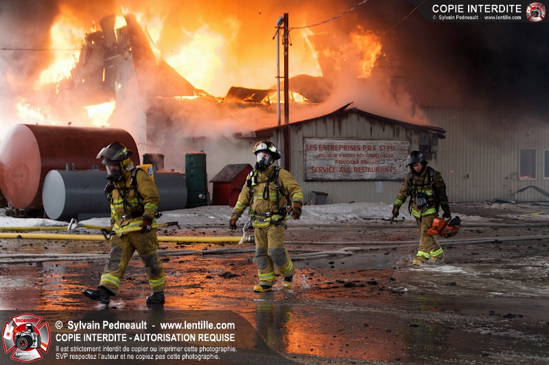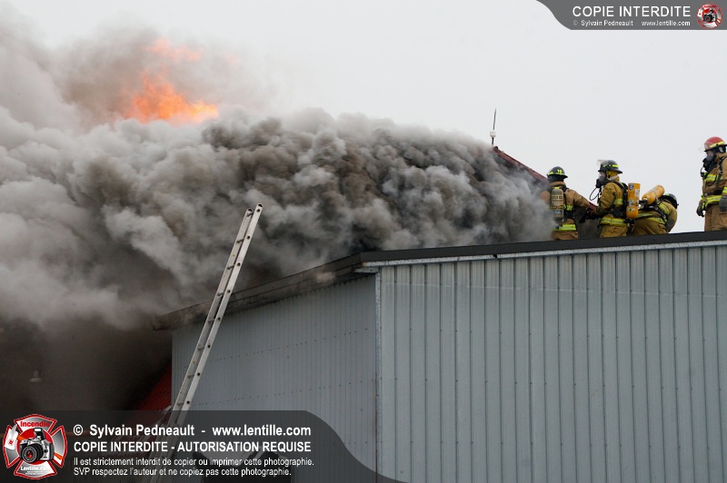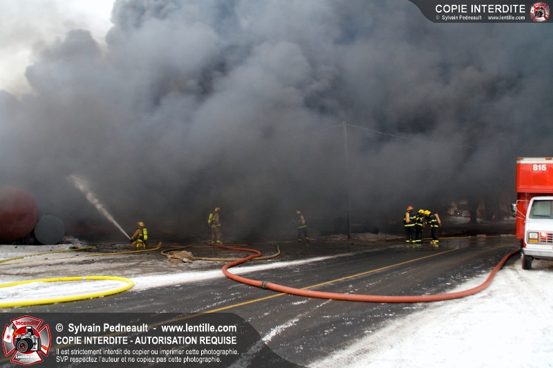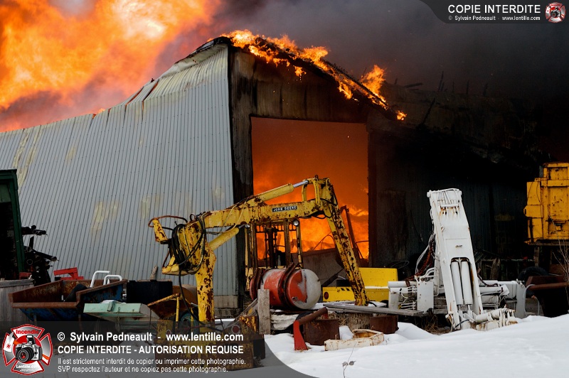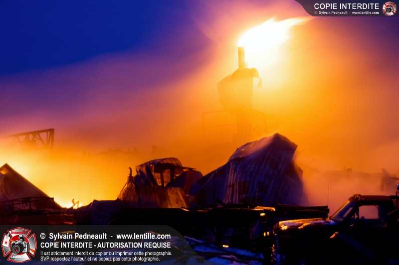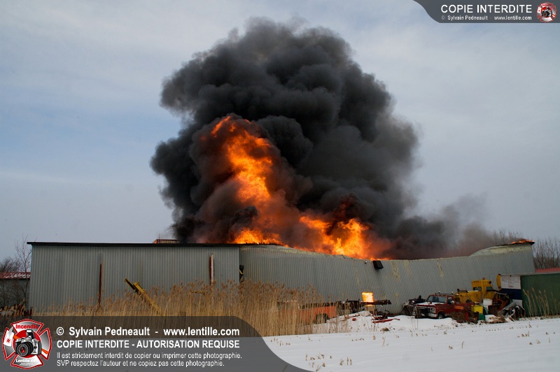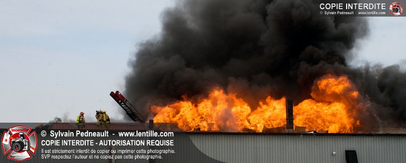 Un violent incendie a complètement détruit une industrie du Rang du Haut-de-la-Rivière-Nord à St-Pie. Malgré une attaque agressive synchronisée à l'opération de ventilation, il n'y avait malheureusement rien à faire pour contrer la propagation très rapide des flammes.