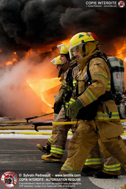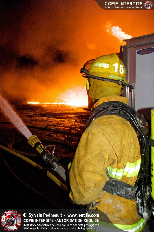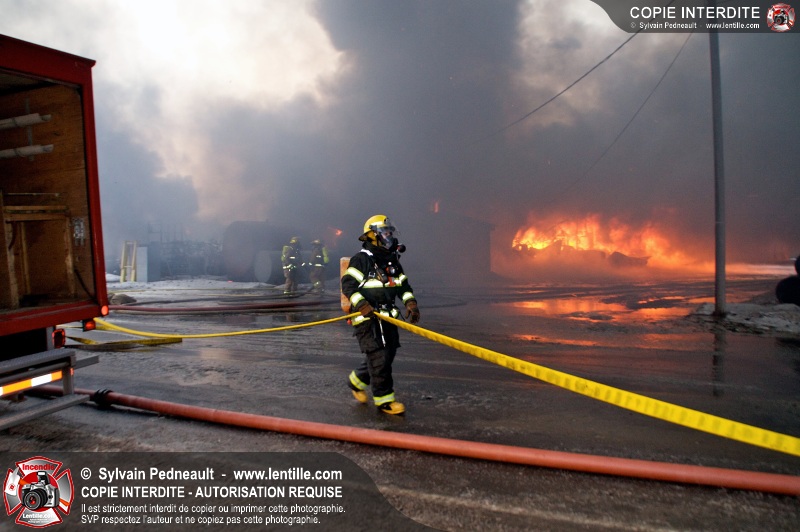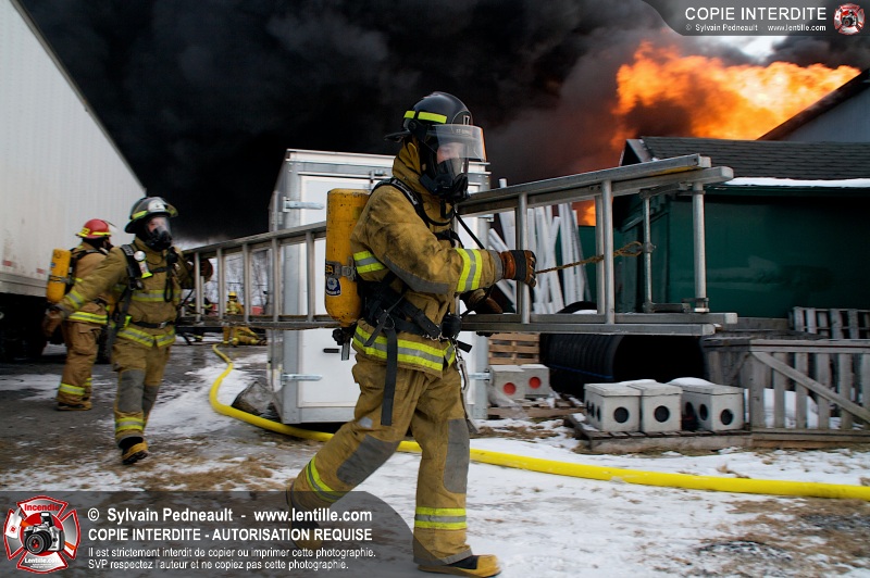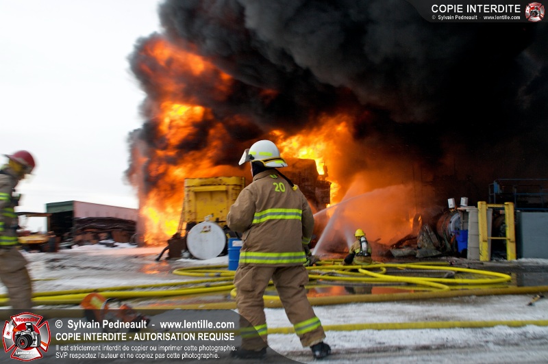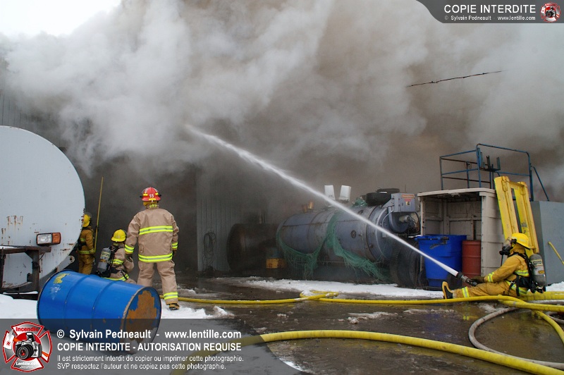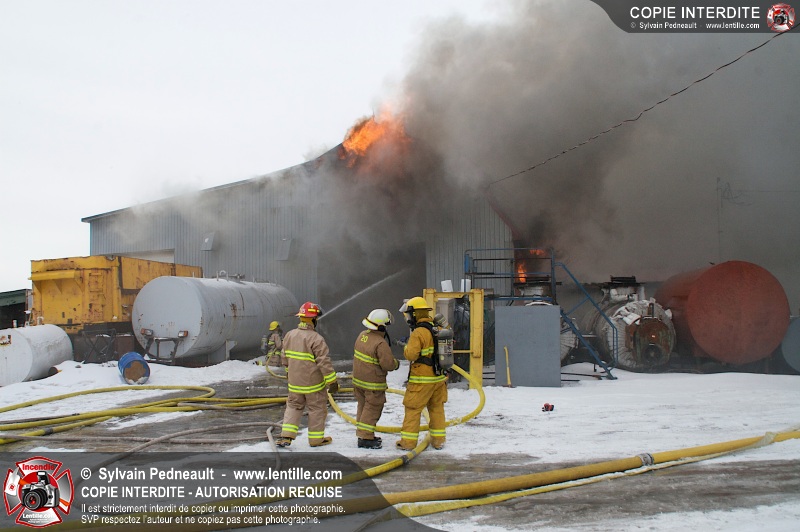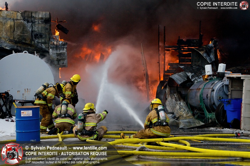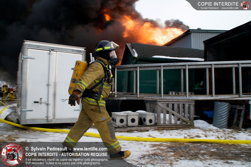 Un violent incendie a complètement détruit une industrie du Rang du Haut-de-la-Rivière-Nord à St-Pie. Malgré une attaque agressive synchronisée à l'opération de ventilation, il n'y avait malheureusement rien à faire pour contrer la propagation très rapide des flammes.