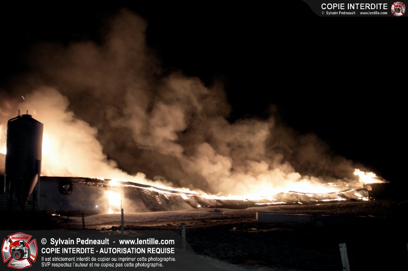 Les pompiers de Saint-Hyacinthe ont été dépêchés sur le rang Salvail Sud à La Présentation pour un feu de poulailler. À leur arrivée, l'incendie ravageait une bonne partie du bâtiment et se propageait rapidement. Les services incendie de St-Jude, St-Dominique et St-Barnabé-Sud ont été demandés en entraide. Heureusement, le poulailler était inoccupé lors de l'incident.