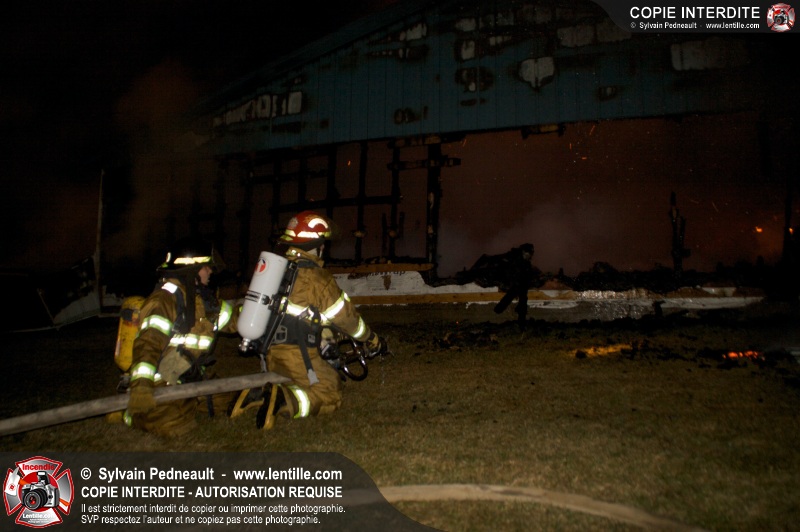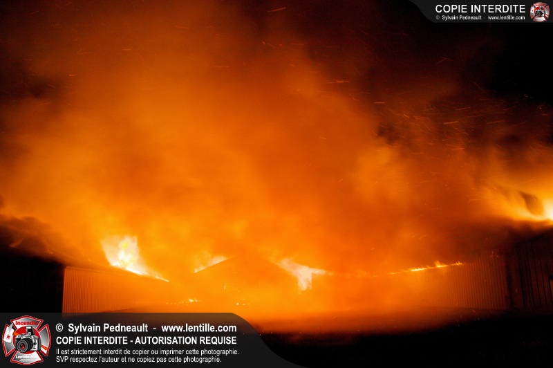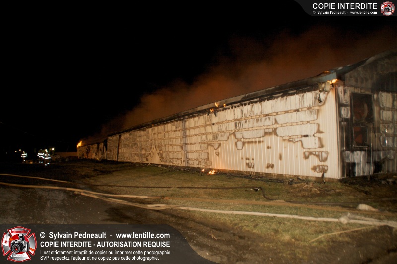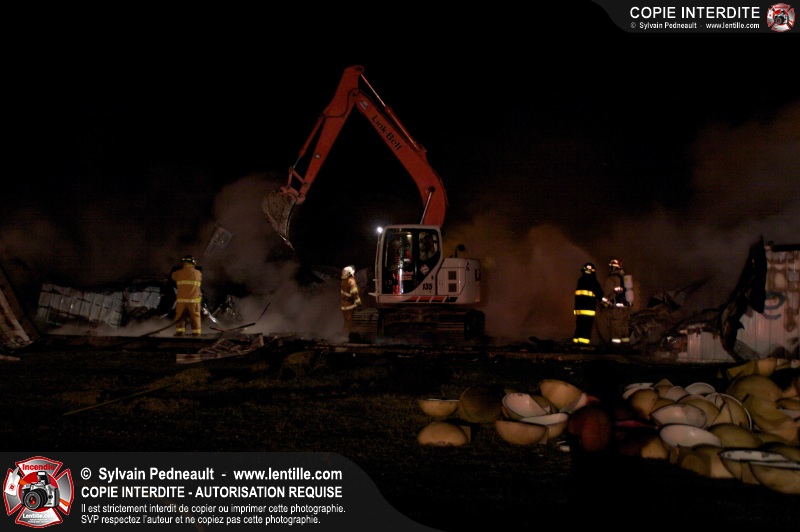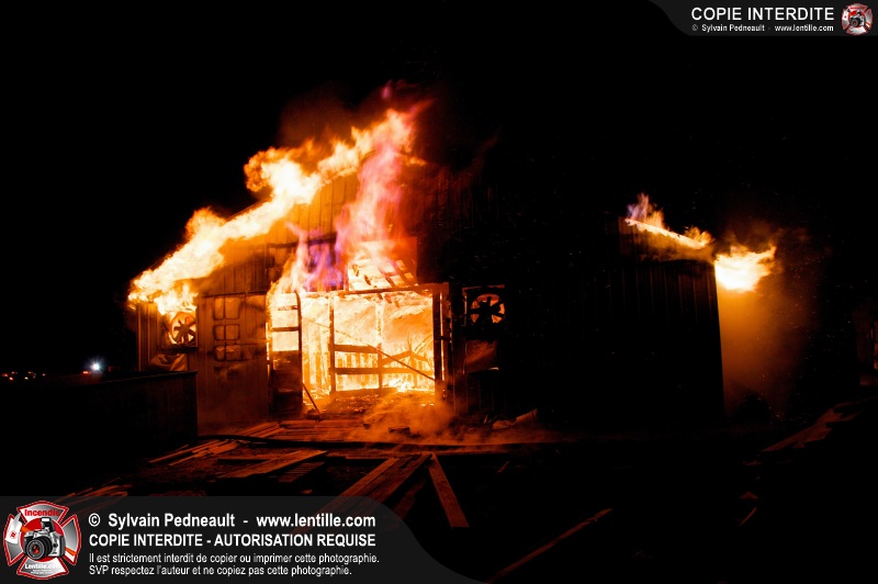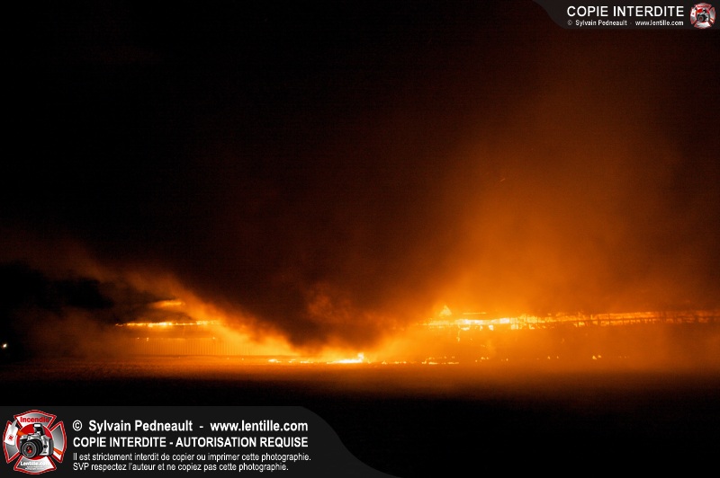 Un incendie majeur a complètement détruit une grande ferme en rénovation sur le 2ième rang à Ste-Hélène.