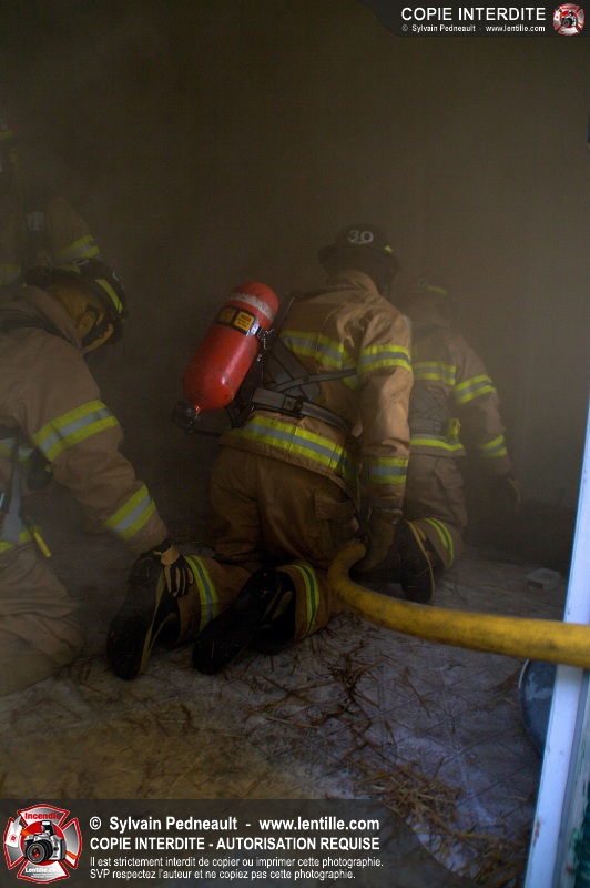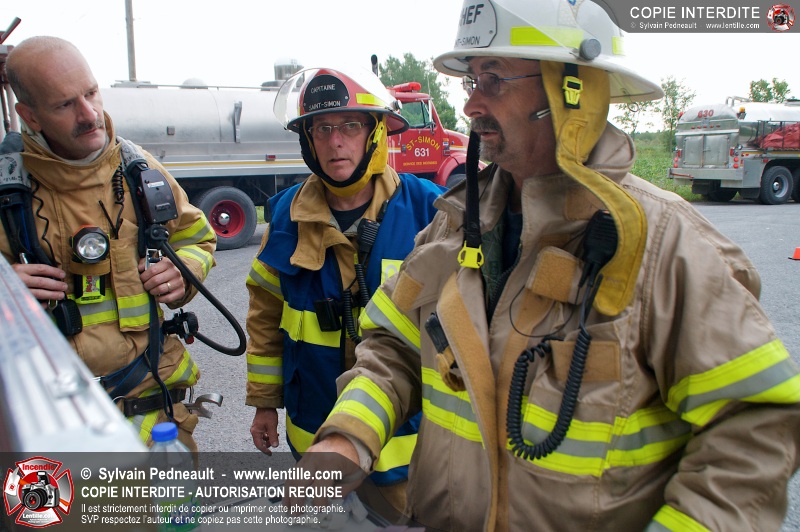 Les pompiers de St-Simon ont eu la chance de participer à une pratique d'incendie organisée sur leur territoire. Les pompiers — dont plusieurs nouveaux — ont ainsi reçu une précieuse formation qui les aidera lors d'interventions futures.