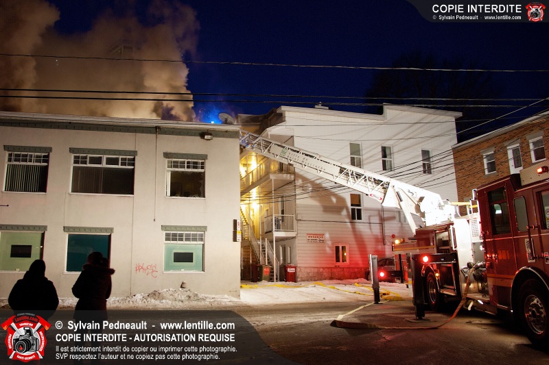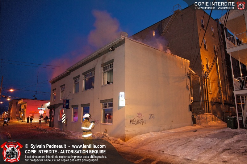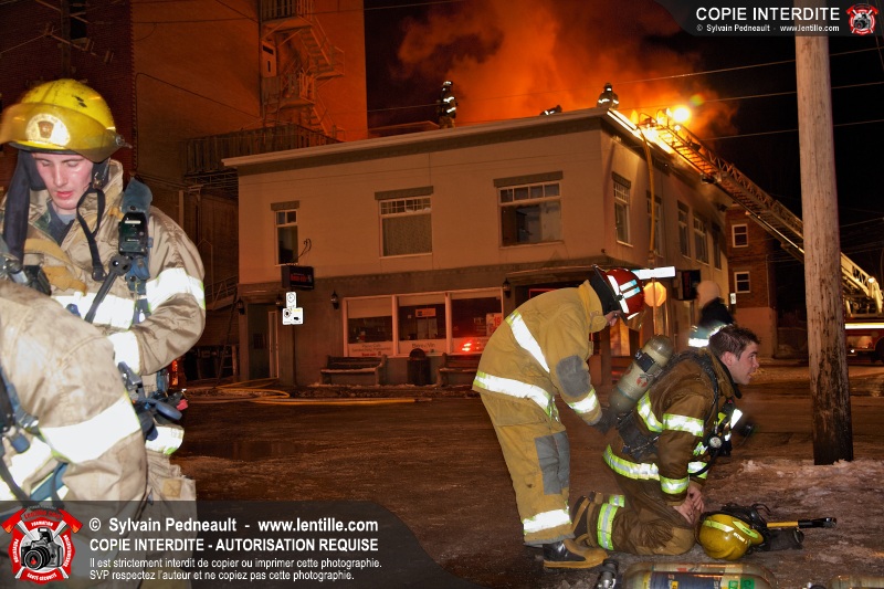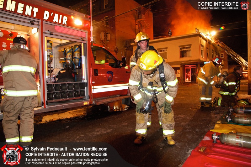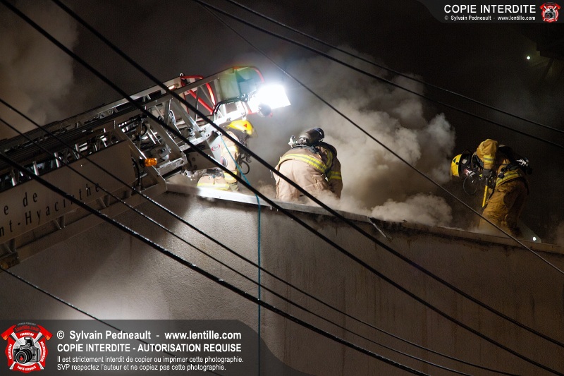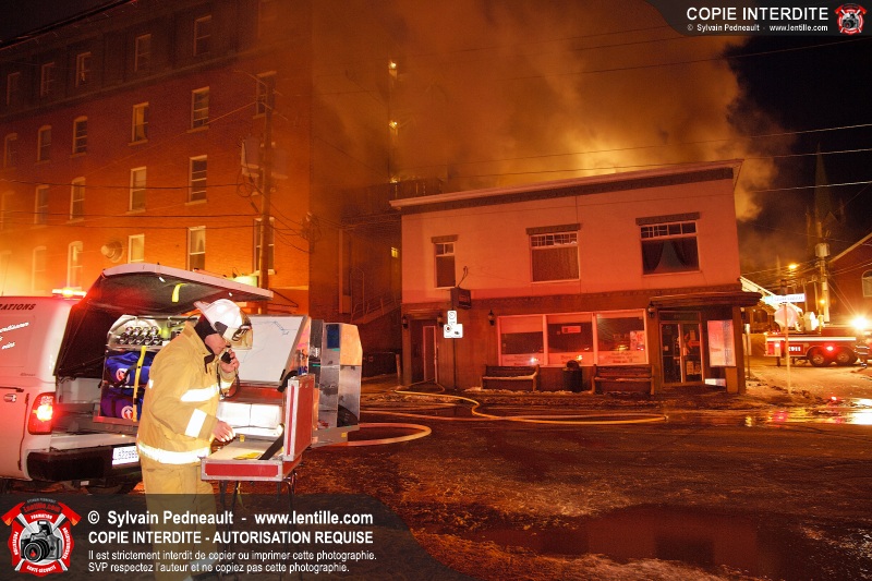 Un incendie majeur dans un bâtiment commercial et résidentiel du centre-ville de Saint-Hyacinthe a nécessité cinq alarmes, mobilisant ainsi plus de cinquante pompiers et un grand nombre de véhicules incendie.